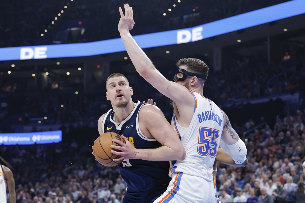 约老师给哈尔滕施泰因和杰林-威廉姆斯上课,哥俩都无法单防约老师,这也在根本上决定了雷霆必须对约老师上包夹,掘金传切和定点三分基本盘一直都在,关键是约老师身边人的发挥。