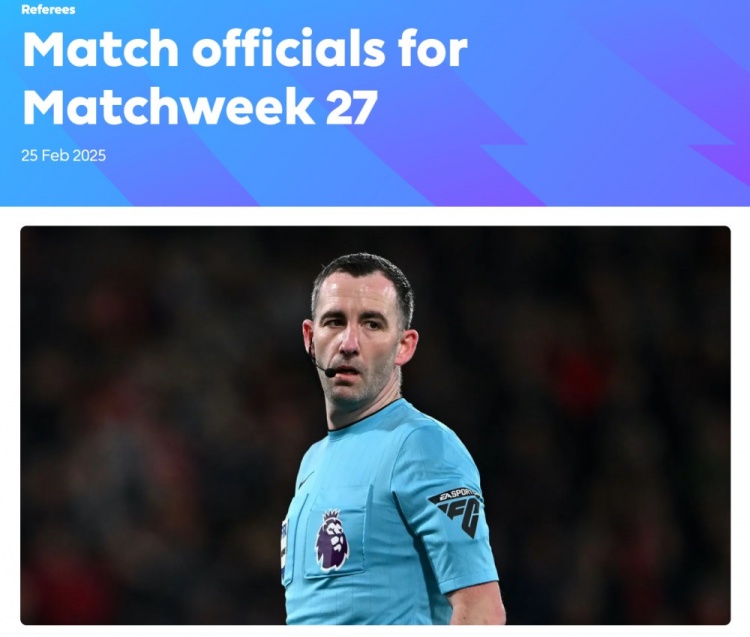 2月27日4:15 利物浦vs纽卡 主裁判:克里斯-卡瓦纳 VAR:马特-多诺霍