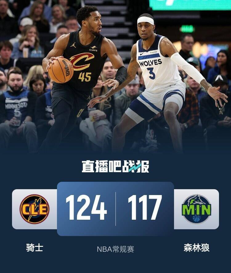 首节开局双方拉开架势对攻,森林狼虽然开局状态更优取得15-8的领先,但骑士很快通过米切尔和加兰的连续三分追上比分。整个上半场双方进攻端效率都很高,骑士方面米切尔半场砍下22分一扫上一场低迷状态;森林狼打得更加分散,除了爱德华兹和替补端的里德拿到10+得分外,戈贝尔连续吃饼半场5投全中拿到15+10的两双数据,双方上半场势均力敌平手结束。休息归来森林狼熄火单节仅得19分,骑士则抓住机会打出跨节26-5的攻势直接反超并拉开两位数分差;此后森林狼虽然状态有所回暖但追近比分时已经晚了。最终,骑士客场轻取森林狼拿下比赛。