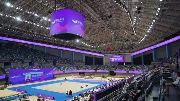 黄龙体育馆总建筑面积24489平方米,共有近8000个观众坐席。历经亚运改造,黄龙体育馆更新了运动木地板、看台座椅、大屏幕,以及中间的可升降斗屏。黄龙体育馆斗屏的设计参考国外主流NBA标准场馆,既能满足传统分屏功能,也能整屏播放,提高赛事的观赏性和娱乐性。除斗屏外,黄龙体育馆内的运动木地板也获得国际篮联认证。同时,体育馆坐席两侧也增设了两道环屏,能够为赛事营造良好的观赛氛围。