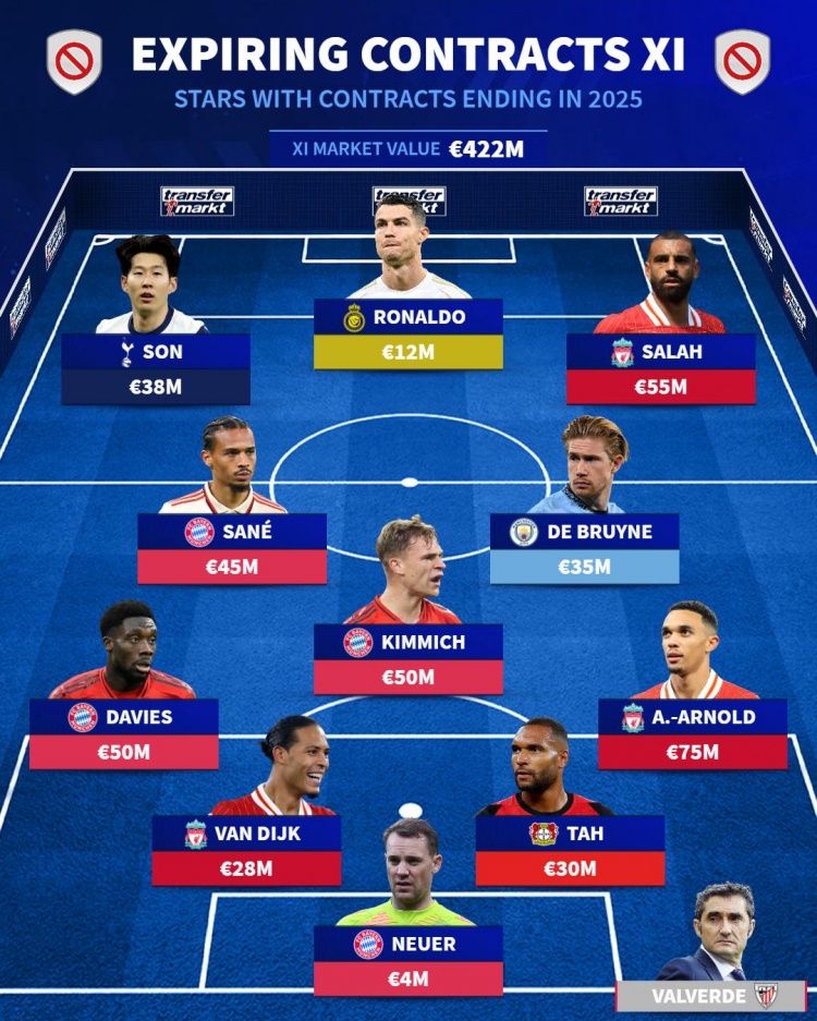 德转此前列夏窗自由球员阵容,其中孙兴慜已与热刺续约