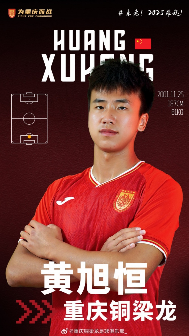 1月17日讯 重庆铜梁龙俱乐部官方宣布,球员黄旭恒正式加盟球队。黄旭恒出生于2001年,场上司职中后卫,此前效力于青岛红狮。上赛季结束后,黄旭恒一度到天津津门虎参加试训,但最终没有留队。