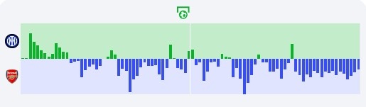 此外,国米还充分的开拓了场地的宽度,靠达米安/迪马尔科、邓弗里斯的传中,来逼迫阿森纳的突击者回撤。这一点算是很好的完成了靠进攻助防守的策略。在被压制时,国米反击基本是边路发起的,靠着速度的优势来完成突破、传中。就此阿森纳被动的将整个进攻线回撤,只好是跟着国米去退防。