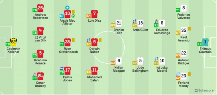第一个进球则也是如此。麦卡利斯特跟布拉德利可都不是靠快速立名的选手,然而,在这么多反击选手身边,他们的速率必然也是能够跟的上的。虽然皇马的后卫们站定了,禁区前的人手够多,然而他们的撞墙配合如入无人之境的轻松完成,就这么攻破了库尔图瓦的大门。为何?无非熟悉反击的对策罢了。