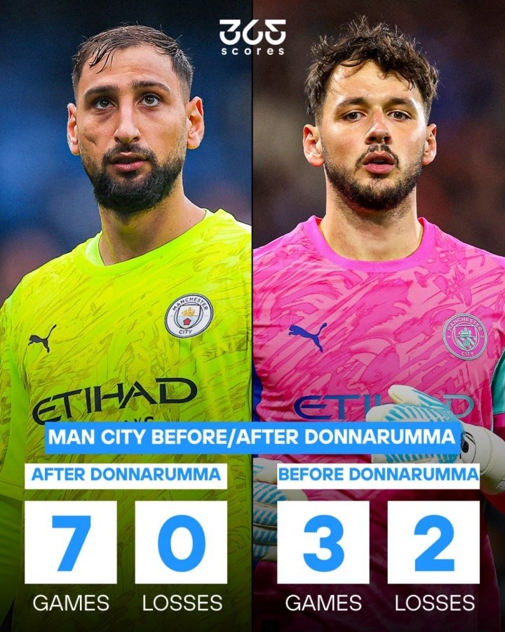 门将多纳鲁马在其中可谓居功至伟:他加盟曼城后立即成为了球队的常规首发,出战6场比赛(包含4场英超、2场欧冠),贡献3场零封,此外只丢掉4球。